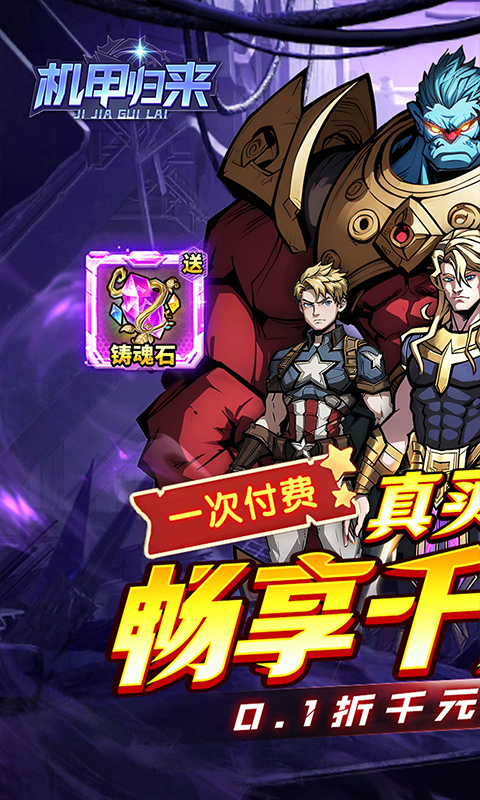 《机甲归来》是一款充满美漫风格的MMO挂机游戏,它以精彩的特效和丰富的玩法为核心,带你进入一个前所未有的机甲战斗世界。游戏内,充值仅需0.1折的超值优惠,让你充值648元仅需6.48元,同时享受代金券最高10倍膨胀的福利。创角即送豪华大礼包,包括铸魂石、魔力、宝石、金币和强化石等珍稀资源,助你快速成长,轻松称霸。在这里,你可以随时挂机升级,也可以挑战各种精彩副本,与好友组队并肩作战,共同探索机甲世界的无限可能。