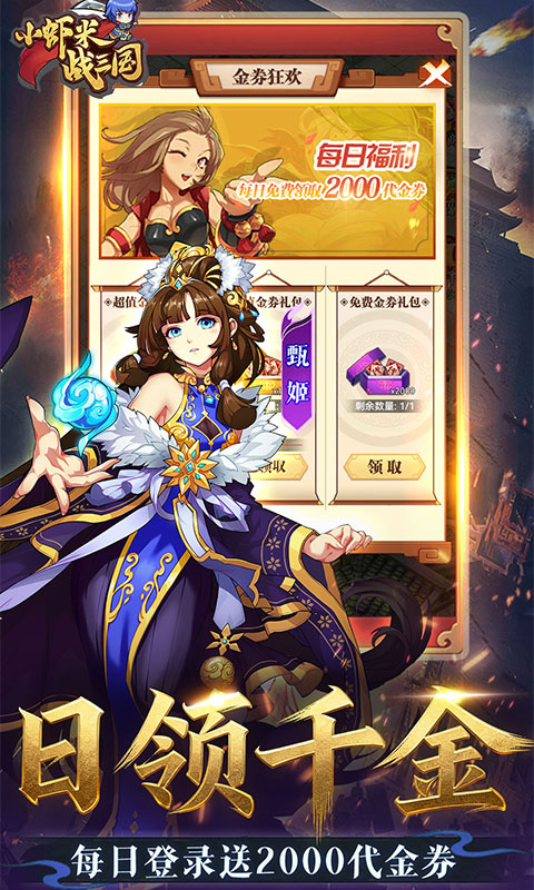 1:每日上线登录送2000代金券,次日重置不叠加