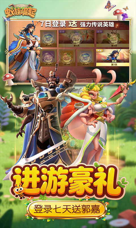 这是一款以蚂蚁元素为题材的国战战争手游,游戏中你将作为蚁族统帅,建造你的专属蚂蚁王国。神机妙算的三国英雄、智勇双全的凯撒,还有数位出类拔萃的豪将,都等待你招募入队,成为蚁族中坚!通过资源囤积、城防修建、战力提升,将一方蚁穴壮大成为兵「蚁」强壮的王国城邦!与百万玩家结盟或是为敌,抵御强敌进攻,联手攻克城池,战无不胜,攻无不取,成为地下世界的霸主!